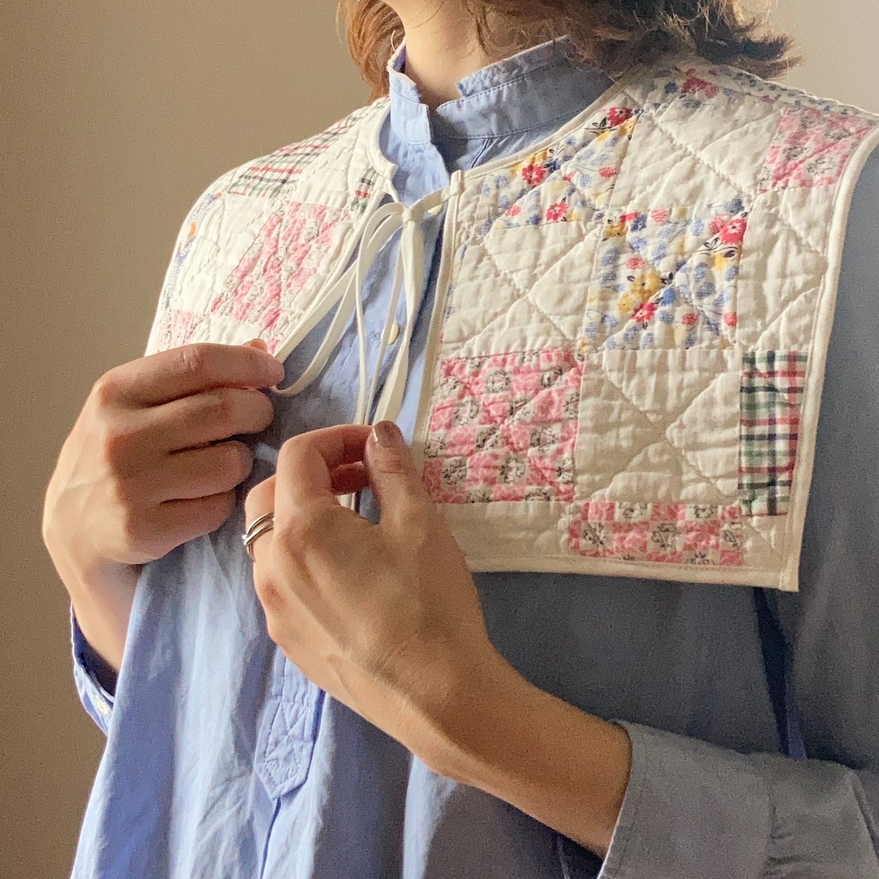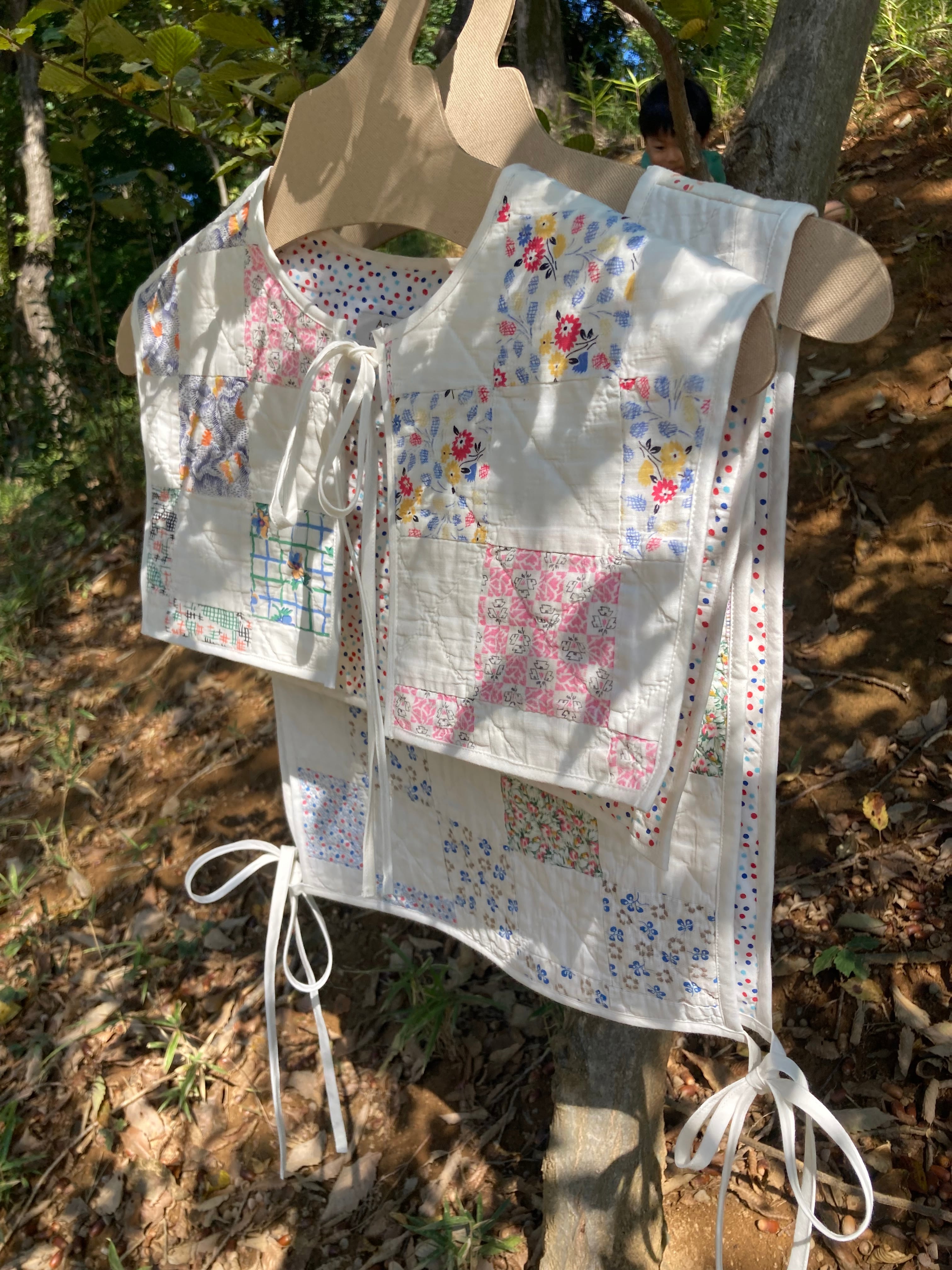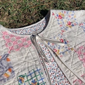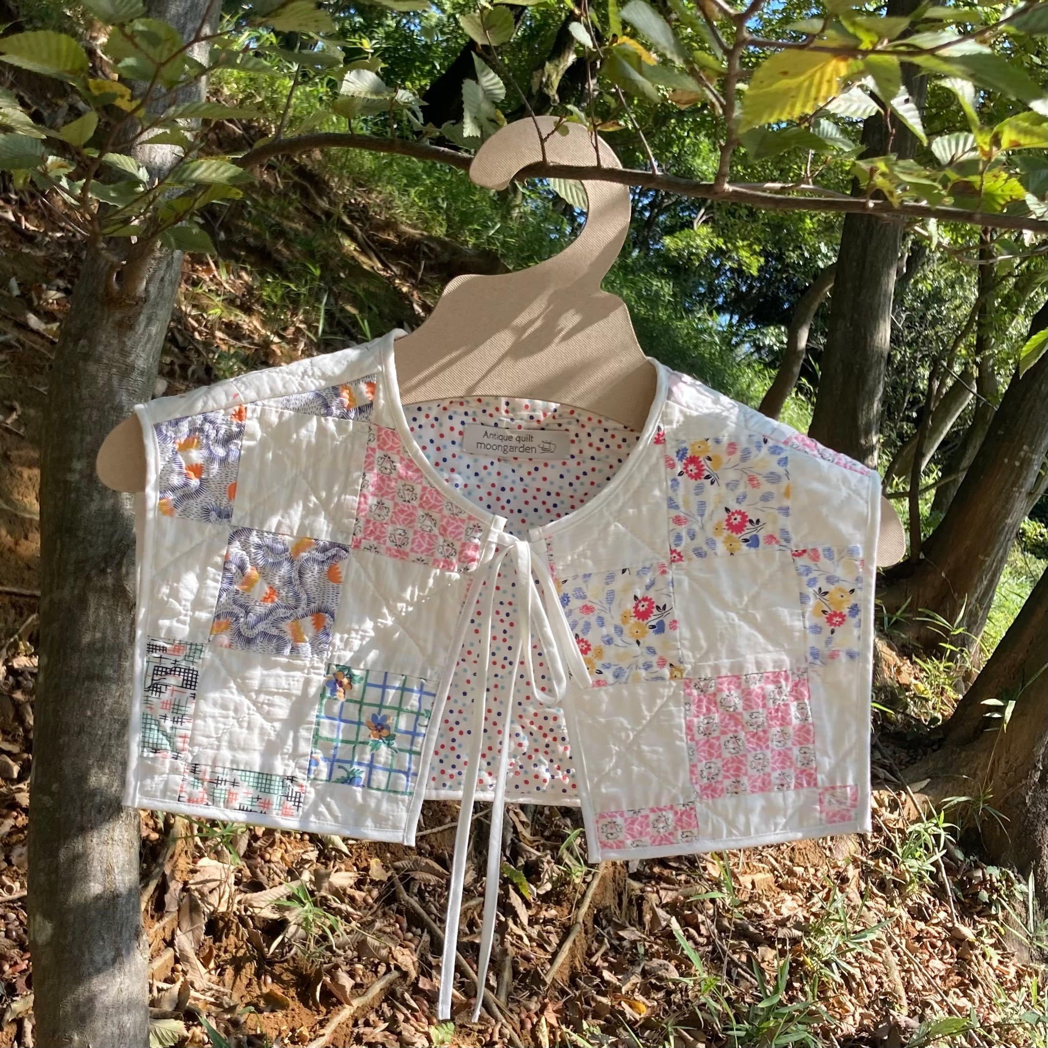 ヴィンテージキルトを使用して作られたこちらのベストは、繊細なデザインが魅力的で、普段な服装を個性的なスタイルに演出します。