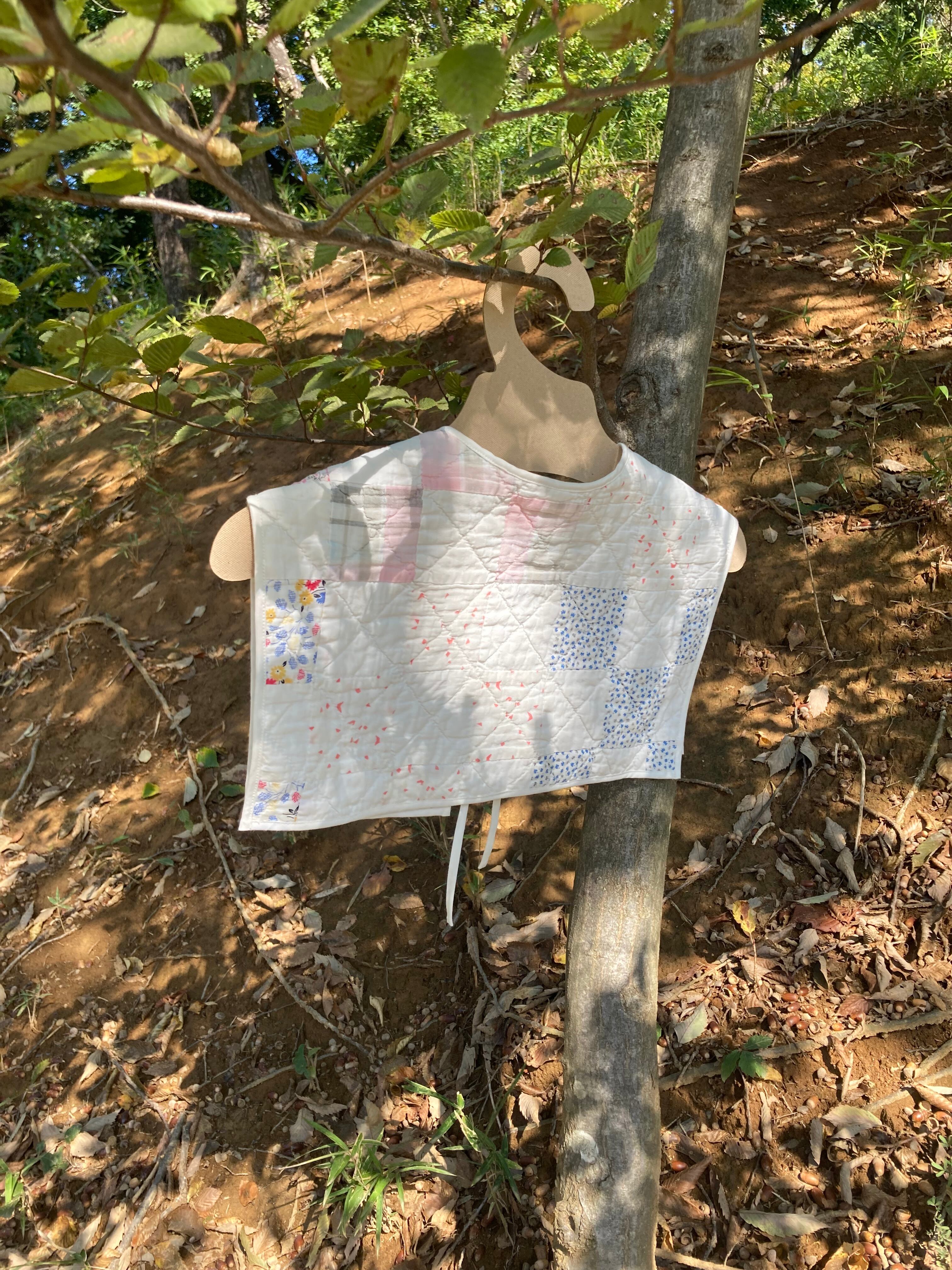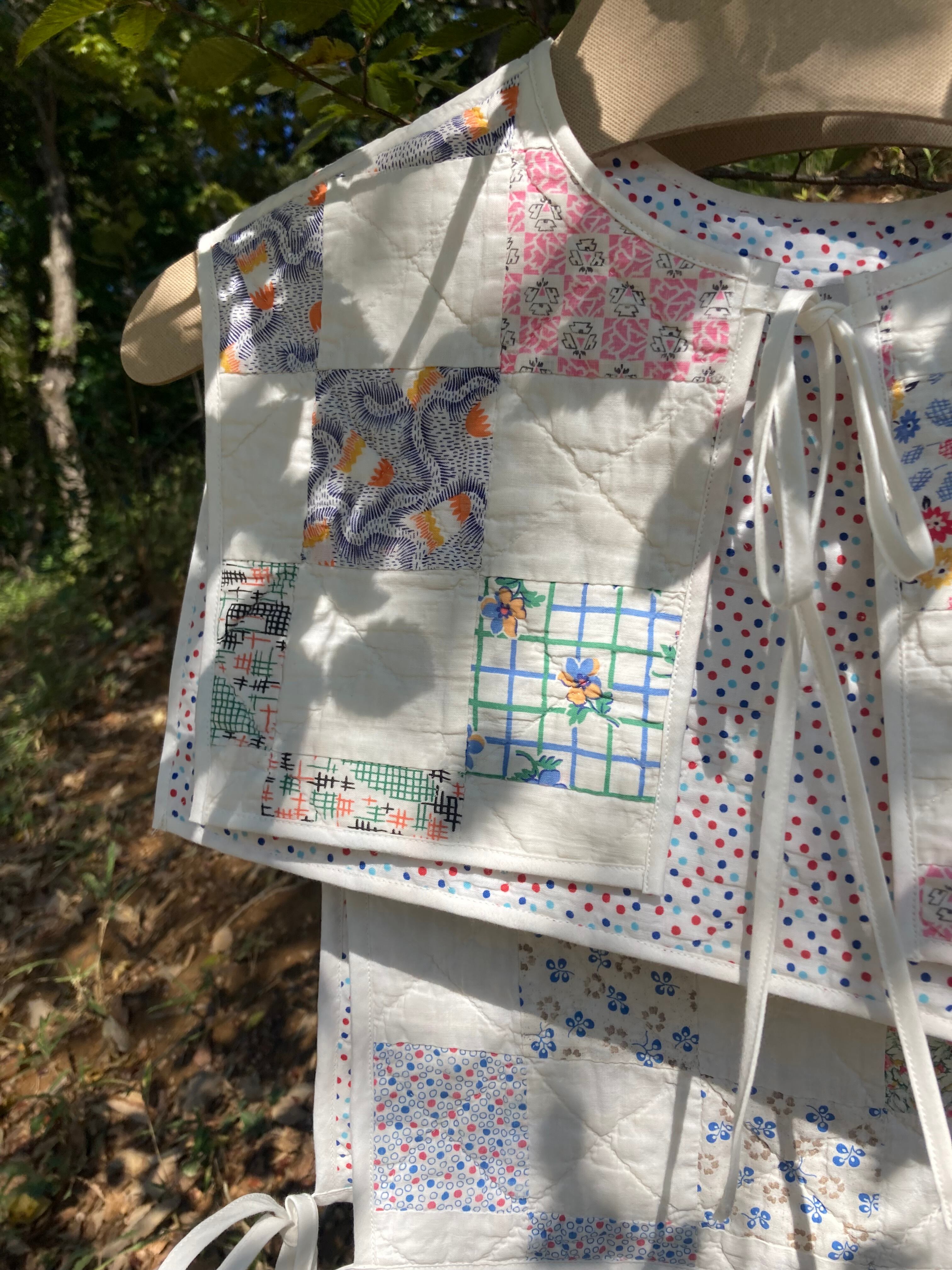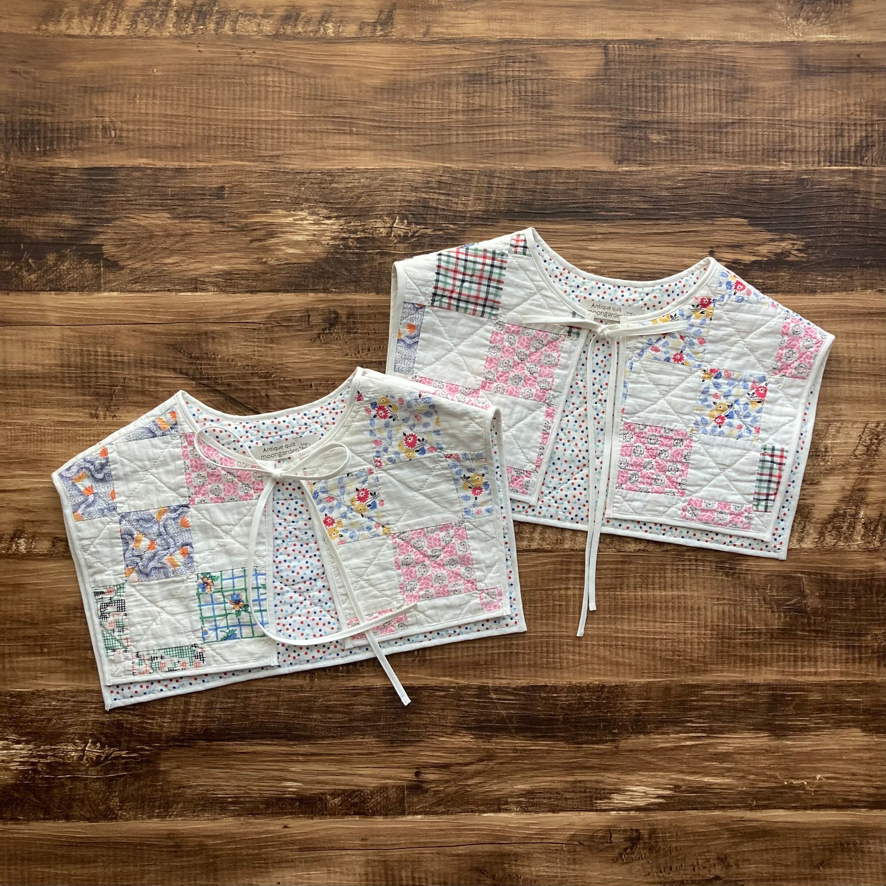 ヴィンテージキルトを使用して作られたこちらのベストは、繊細なデザインが魅力的で、普段な服装を個性的なスタイルに演出します。